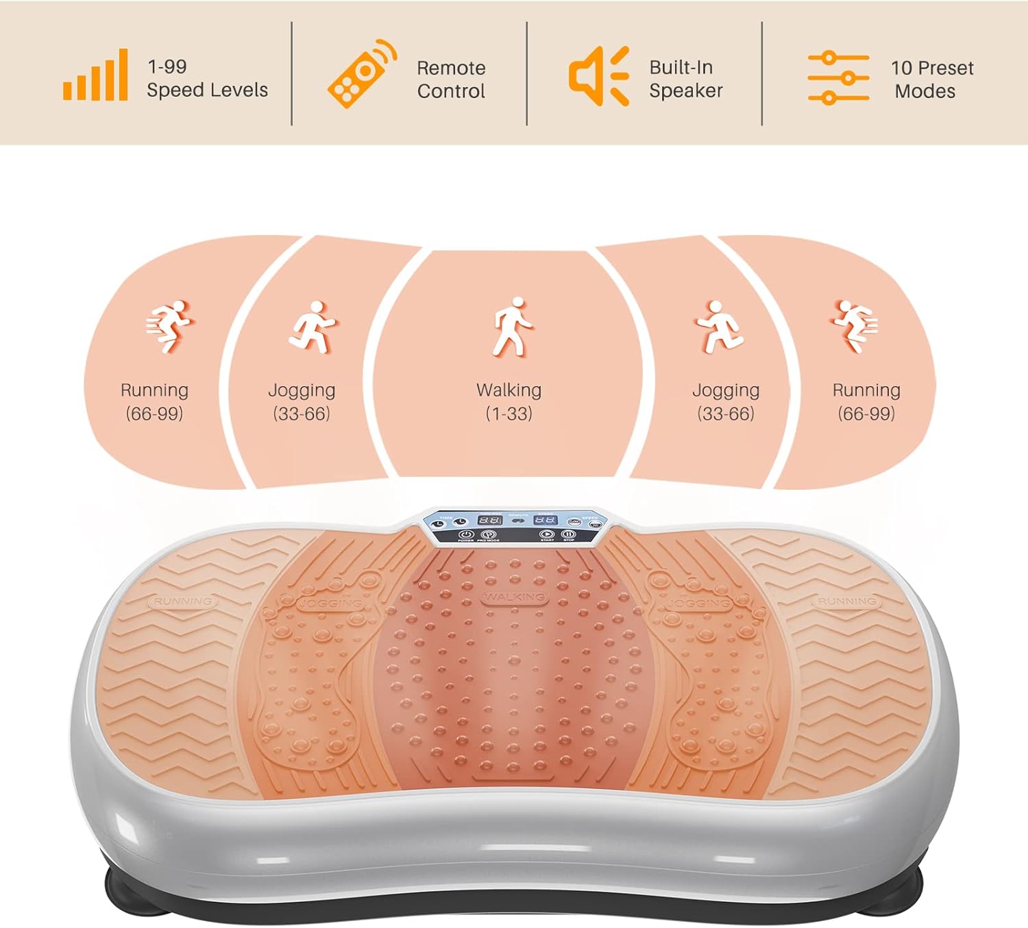 Bigzzia Vibration Plate Exercise Machine 10 Modes Whole Body Workout Vibration Fitness Platform w/ Loop Bands Jump Rope Bluetooth Speaker Home Training Equipment for Weight Loss & Toning