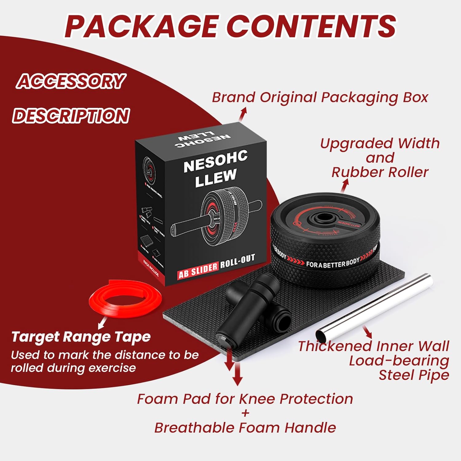 Upgraded Ab Roller Wheel. Abdominal Training Roller for Men/Women, Abdominal Wheels Widened to 3.4 ", Rubber Tread of The Abdominal Wheel Upgraded, Max Weight 490 lbs