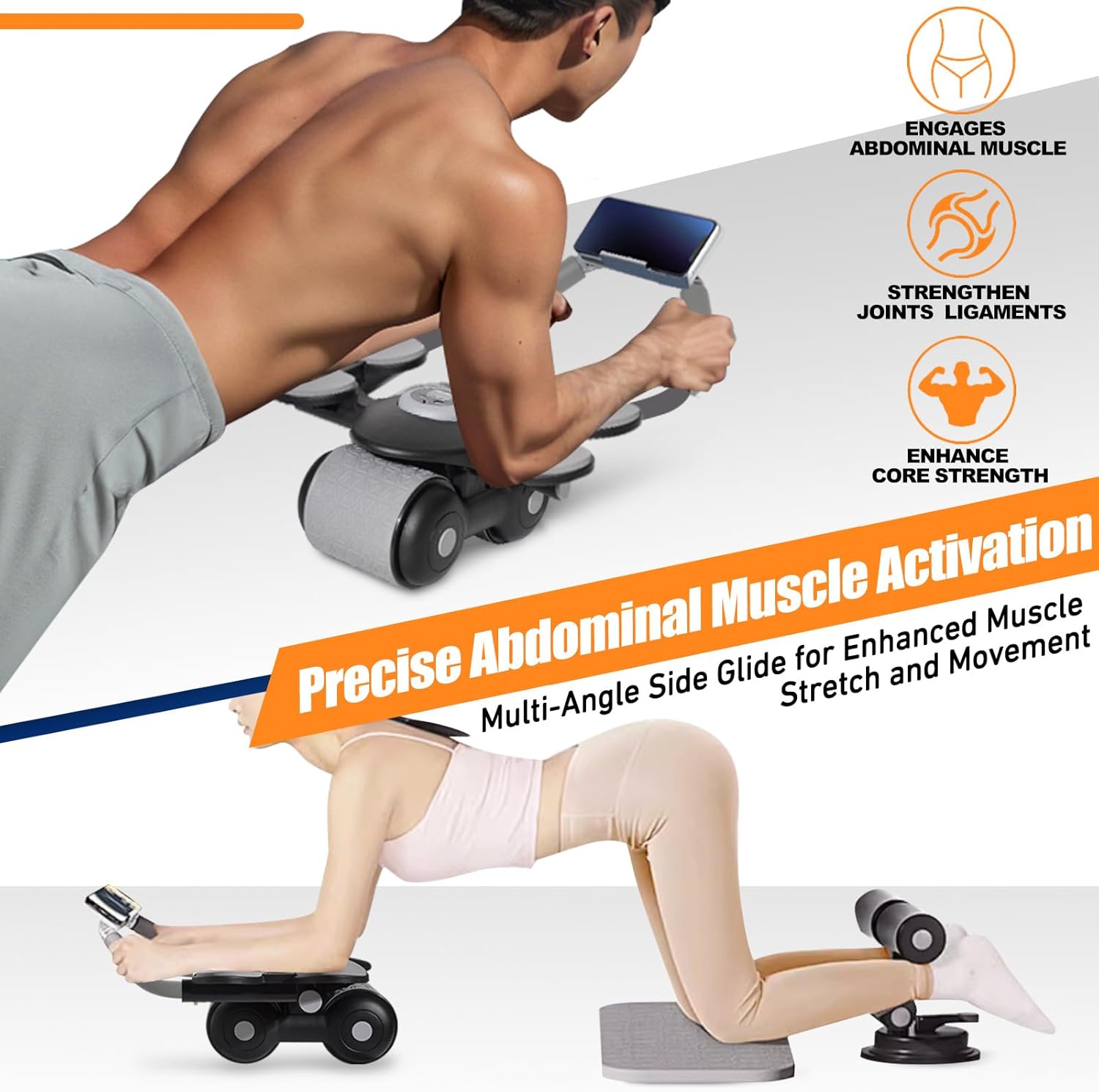 Ab Roller Wheel, New Ab Roller Wheel Automatic Rebound with 4 Elbow Supports, Automatic Rebound Abdominal Wheel with Timer, Abdominal Exercise Roller, Plank Ab Roller Wheel for Core Trainer
