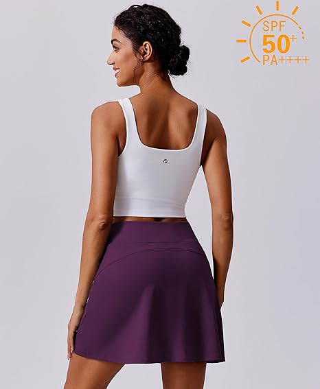 PINSPARK 18" Golf Skorts for Woman High Waisted Tennis Skirt UPF 50+ Athletic Skort Skirts with 4 Pockets Workout Pickleball