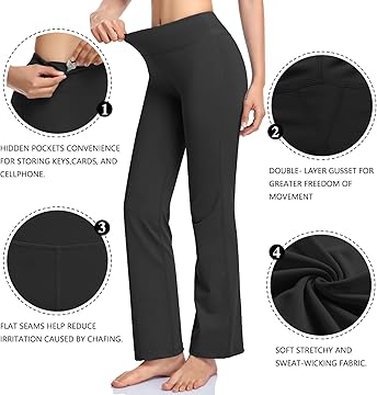 nseam Women's Bootcut Yoga Pants Long Bootleg High-Waisted Flare Pants with Pockets