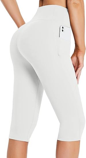 BALEAF Women's Capris with Pockets Knee Length Capri Leggings High Waisted Stretch for Casual Summer Yoga Workout Exercise