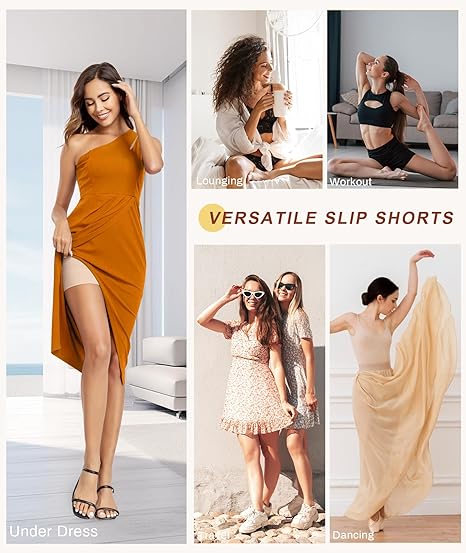 - 【Stay-Put Leg Hems】:No worries about annoying ride-ups! Our slip shorts for women under dress have got your legs covered with a special double-layer wide leg hems that let you move freely without hitch and chafing. Perfect for active days and everyday comfort.