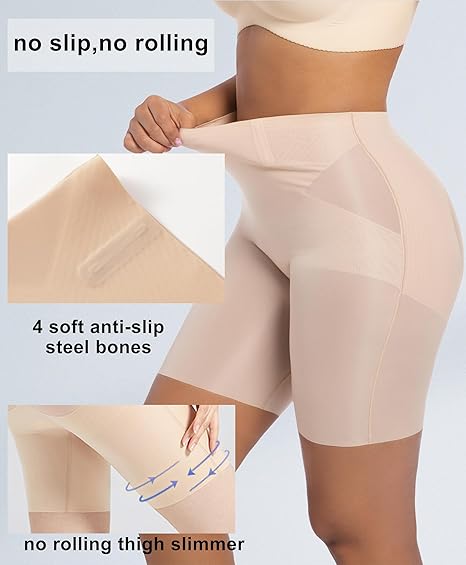 - Butt Lifting Thigh Slimmer Shorts:Our butt lifting shapewear for women features seamless technology with targeted compression that shapes the waist, hips, thighs, hugging all the right places without digging in. The body shaper shorts are designed with dual buttock lifting straps and squeeze-free side panels that naturally lift and prevent a flat, uni-butt, while smoothing and toning your thighs for a more streamlined look