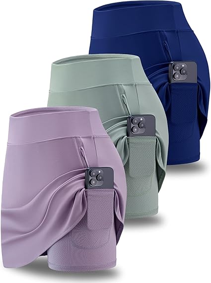 - Four Pockets for Convenience: These women's skorts with pockets are designed with two secure side zipper pockets on the skirt for keys, cash, or cards, and two additional pockets on the shorts to hold your phone, lipstick, or tennis/golf balls. Your perfect skirt shorts for women for active and busy lifestyles.