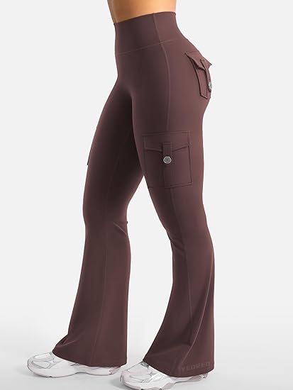 • YEOREO Women Workout Flare Leggings with Pockets Hidden Scrunch Hedda High Waisted Cargo Gym Yoga 32" No Front Seam Leggings