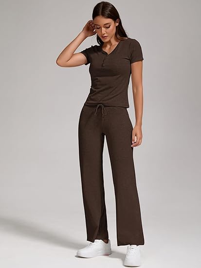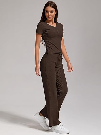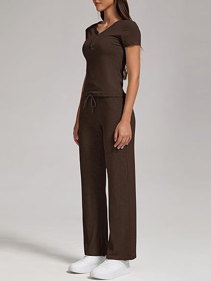 - Fabric:2 piece outfits for women, 92%Viscose, 8%Spandex.this set is made of breathable materials that ensure comfort even on hot summer days.The short sleeves of the top provide a cool and relaxed feel,while the High Waist Pants offer a snug fit.